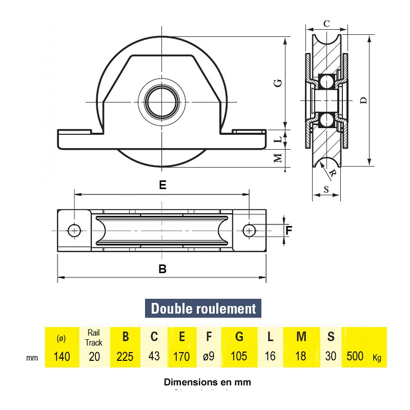 Roulette à encastrer à gorge en U acier zinguée double roulement diamètre nominal ø140mm. Cette roulette peut être utilisée pour des portails coulissants. La gorge en U permettra un guide optimal dans le rail.