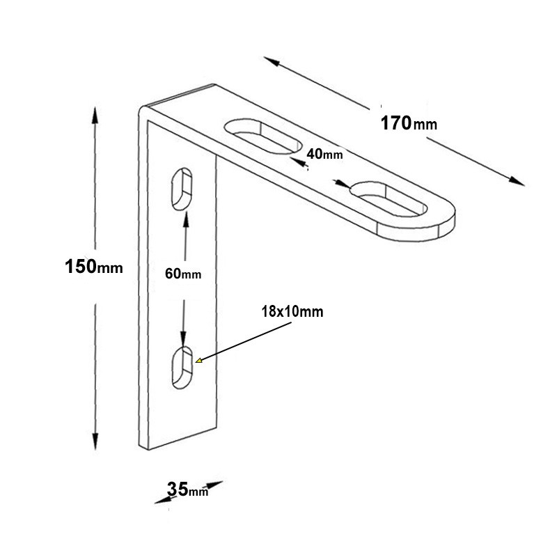 Bras support en équerre pour galets de guidage acier galvanisé 170x150mm pour fixation de deux galets pour portail coulissant avec écartement réglable de 52 à 108mm