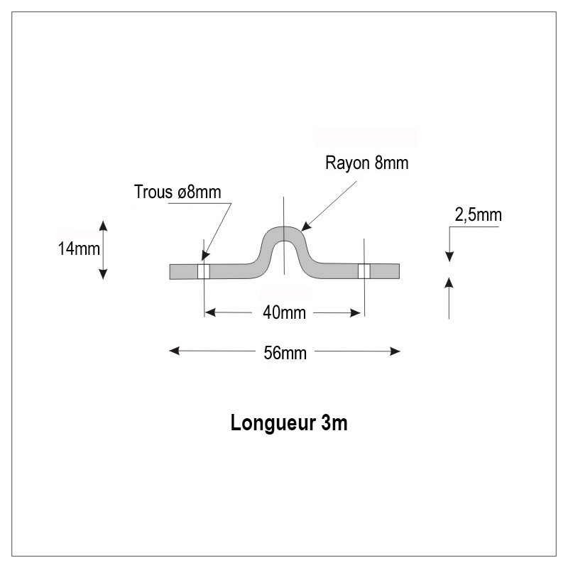 Rail en U diamètre 16mm longueur 3m pour roulettes de portail avec gorges en forme de U de portail coulissant .Ce rail est à visser dans le sol. Cet article existe également en longueur 3m, voir référence FN3660