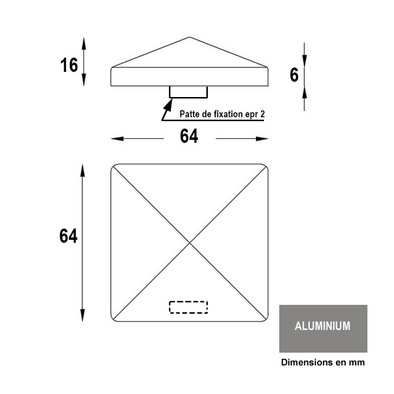 Couvre pilastre 100x100mm aluminium chapeau...