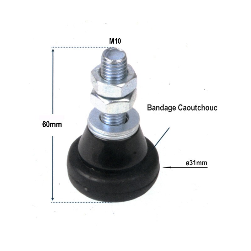 Galet de guidage Ø31x60mm avec roulette bandage en caoutchouc pour guidage lors d'ouverture et de la fermeture des portails coulissant. Axe et écrou en acier zingué