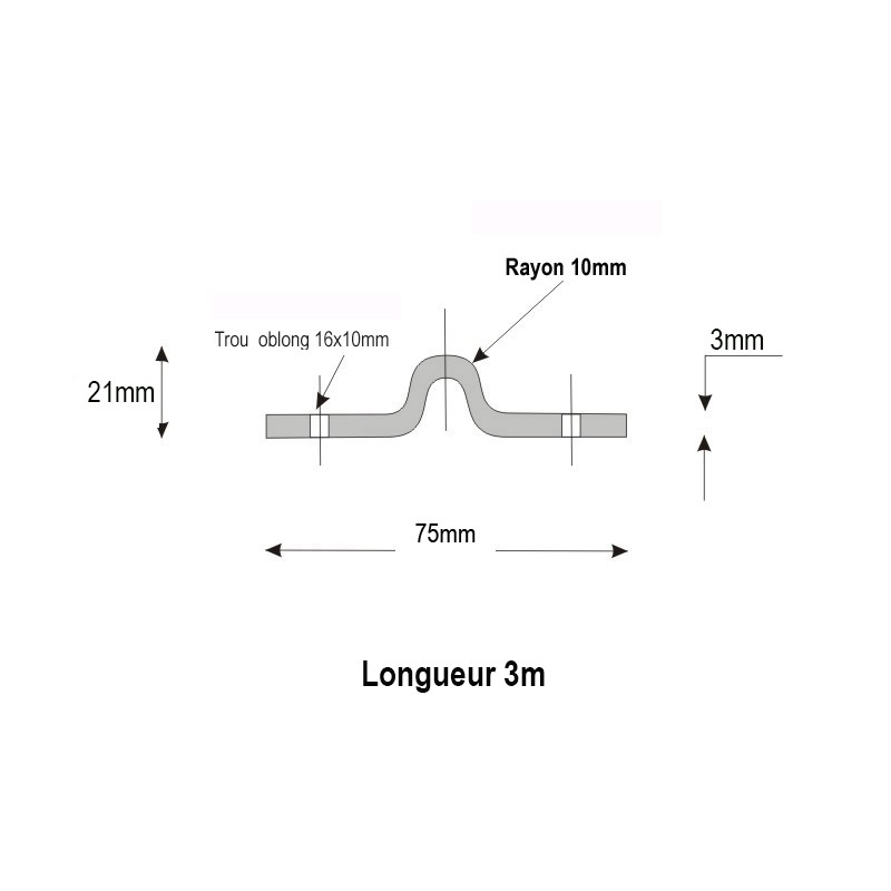 Rail en forme de U en acier zingué diamètre 20mm longueur 3m pour roulettes de portail avec gorges en forme de U de portail coulissant .Ce rail est livré en grande largeur pour une meilleure stabilité lorsqu'il est vissé au sol . Cet article existe également avec une épaisseur de 4mm, voir référence FN3669