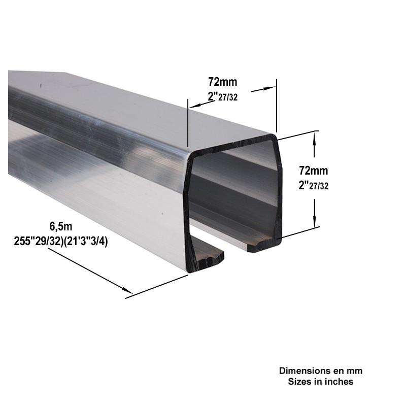 Ce rail autoportant aluminium 72x72mm pour portail coulissant mesure 6,5m de longueur. Il reçoit des chariots de guidage cantilever référence FN36520 et des bouchons de fin d'ouverture FN36522