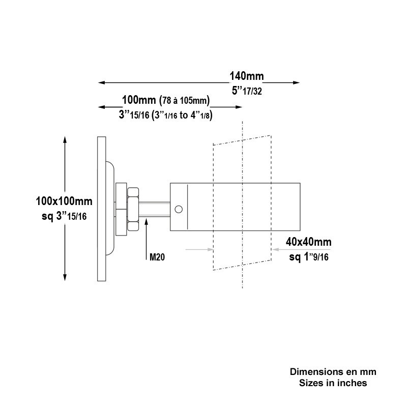 Gond réglable en acier galvanisé pour tube acier de 40x40mm ne nécessitant pas d'axe de serrage.