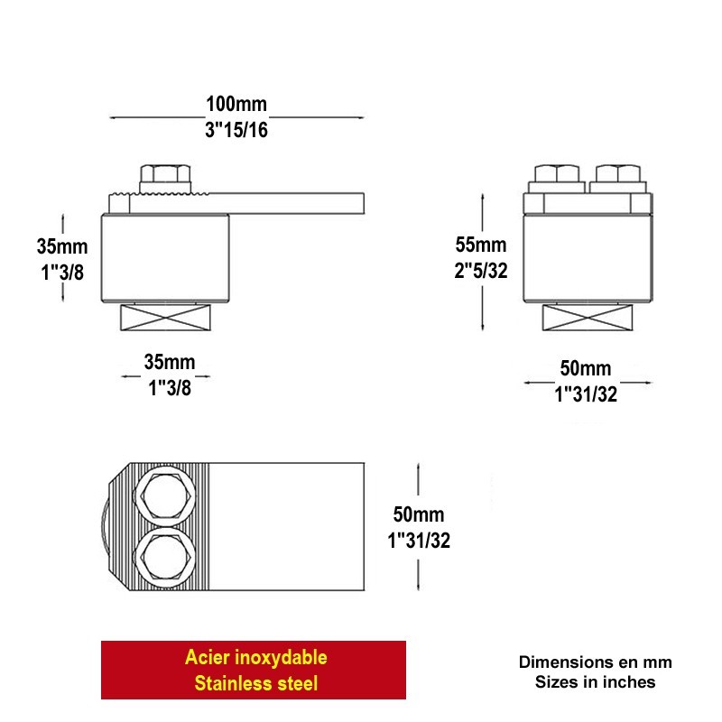 Plat supérieur en acier à souder permettant un réglage de 52 à 60mm.