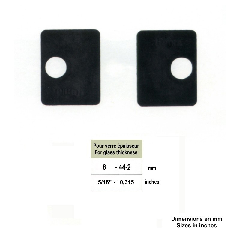 Ce jeu de 2 caoutchoucs pour verre épaisseur 8mm est prévu pour les pinces à verre carrée 55mm référence IN2540 à IN2545.