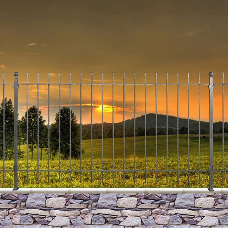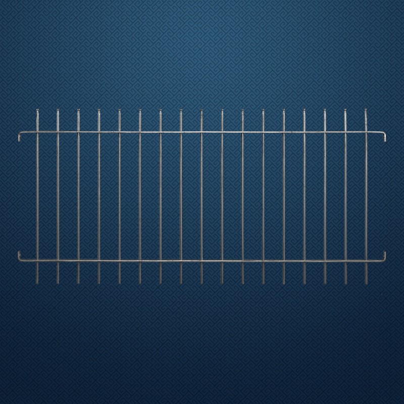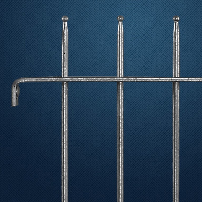 Grille de clôture en acier galvanisé. Élément de 1970x930mm composé de 17 balustres espacés de 96mm.