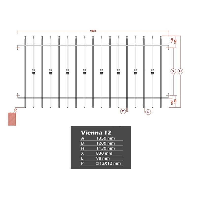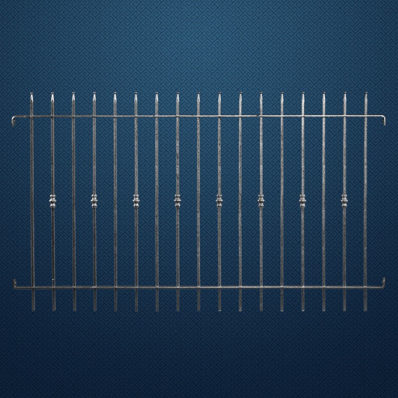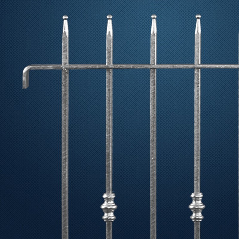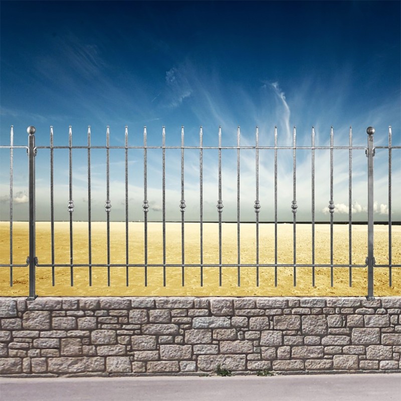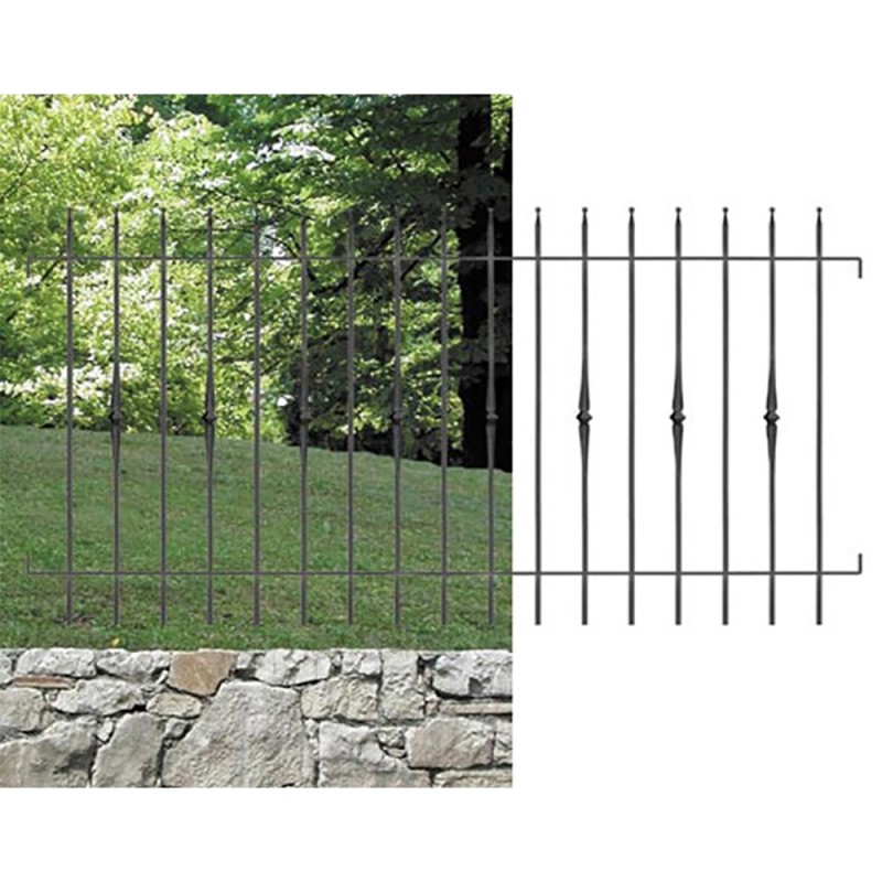 Grille de clôture en acier. Élément de 1970x1130mm composé de 17 balustres espacés de 98mm.