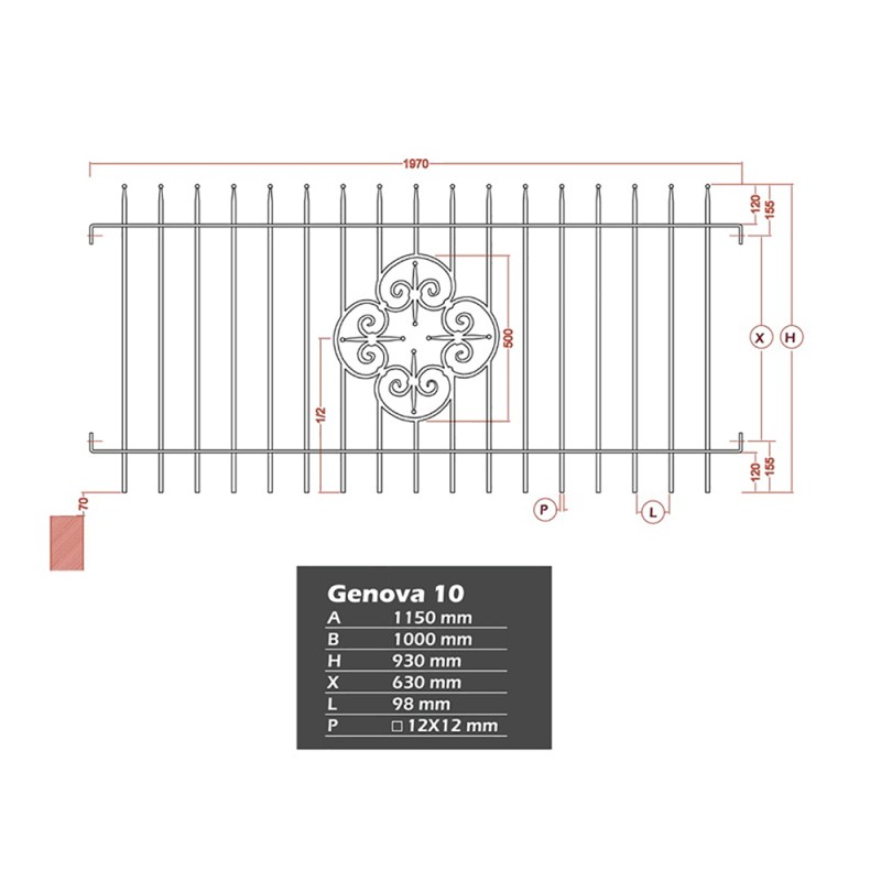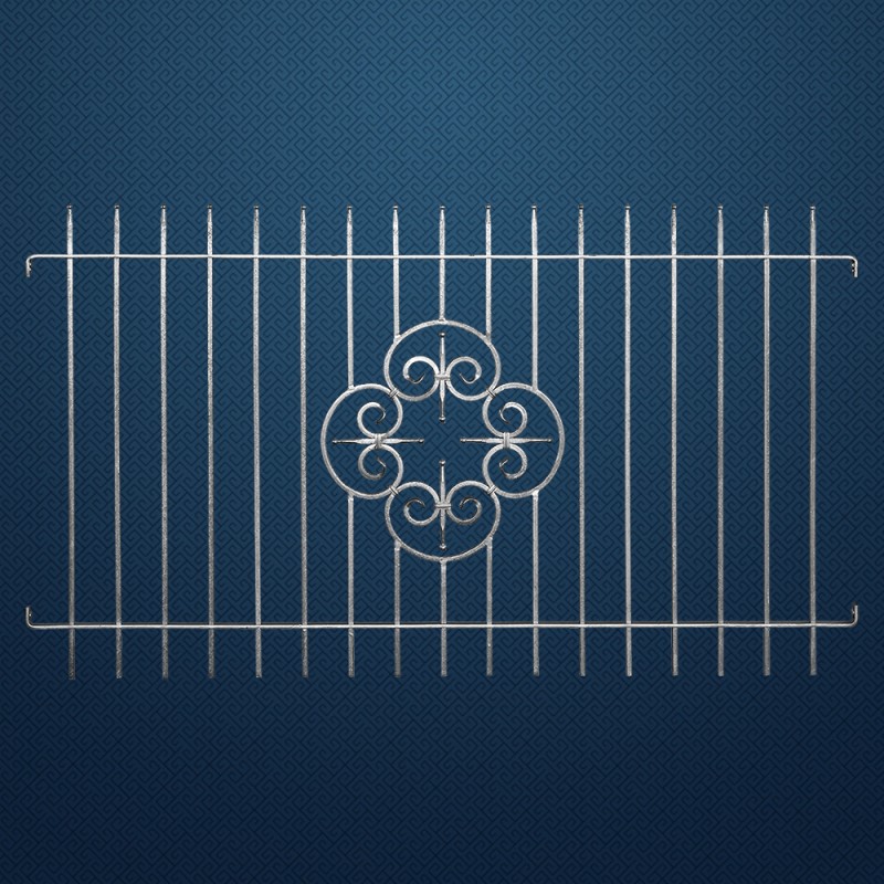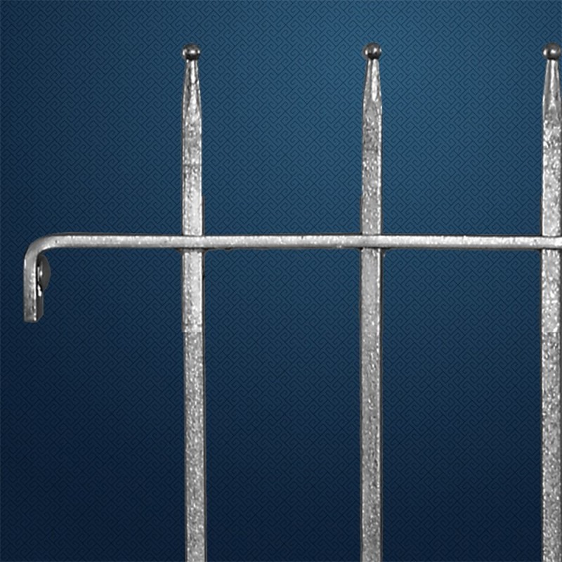 Grille de clôture en acier galvanisé. Élément de 1970x930mm composé de 17 balustres espacés de 98mm.