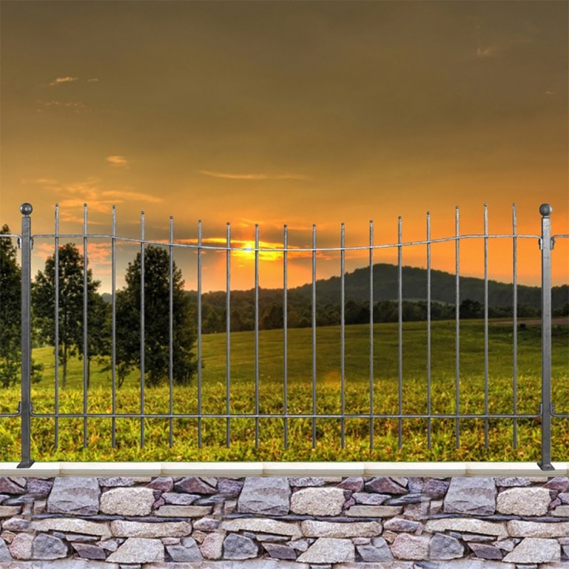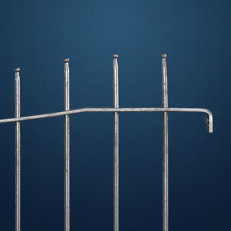 Grille de clôture en acier galvanisé. Élément de 1970x930mm composé de 17 balustres espacés de 98mm.