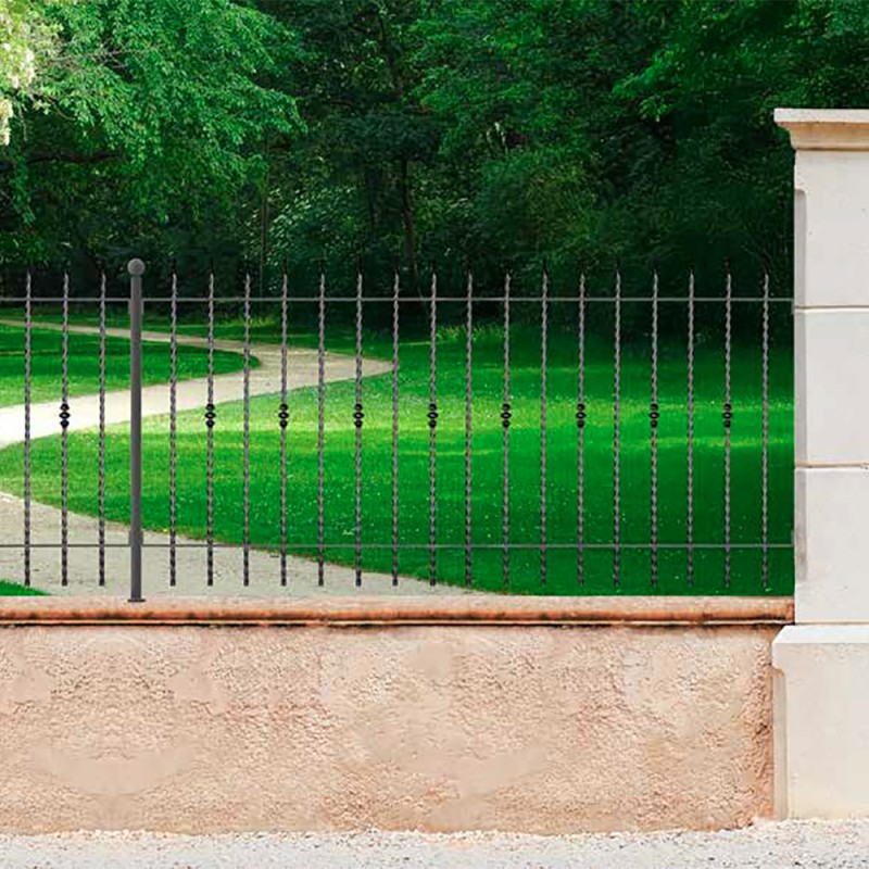 Les balustres sont en carré plein de 12 x 12mm martelés 4 angles. Leur extrémité supérieure est appointée et la terminaison est une boule afin d'assurer une protection optimale.