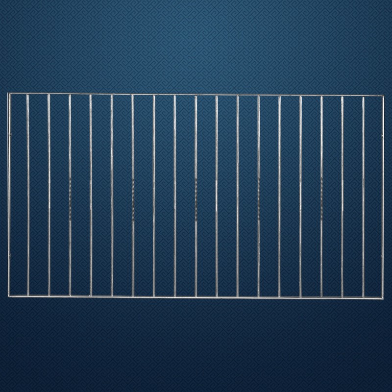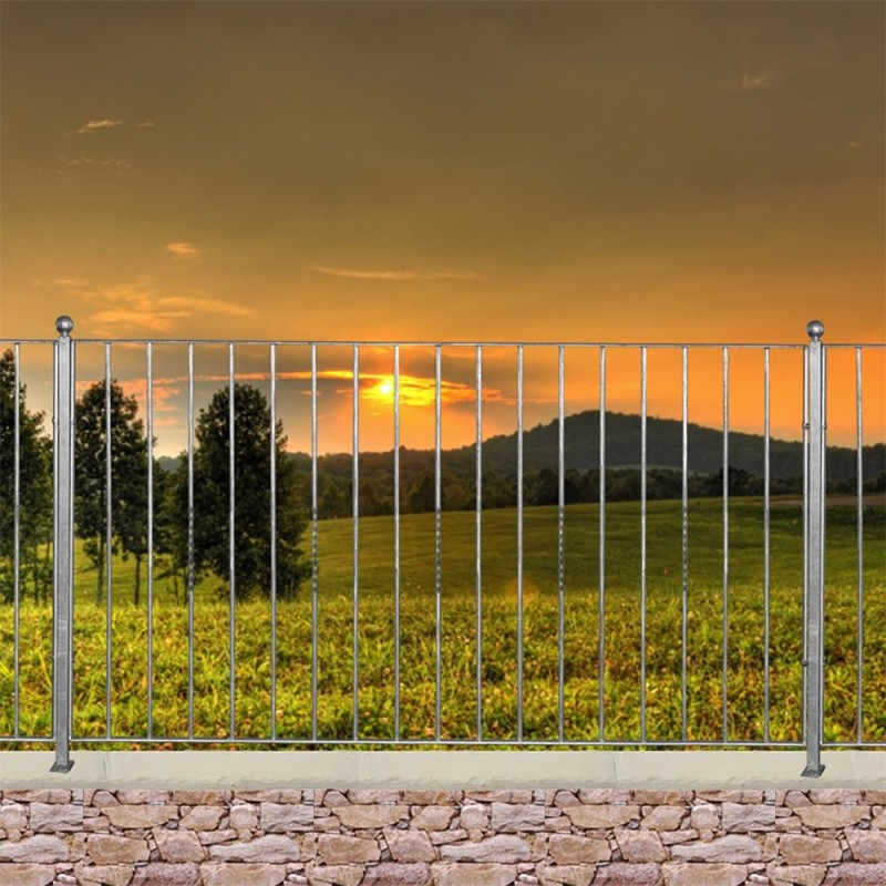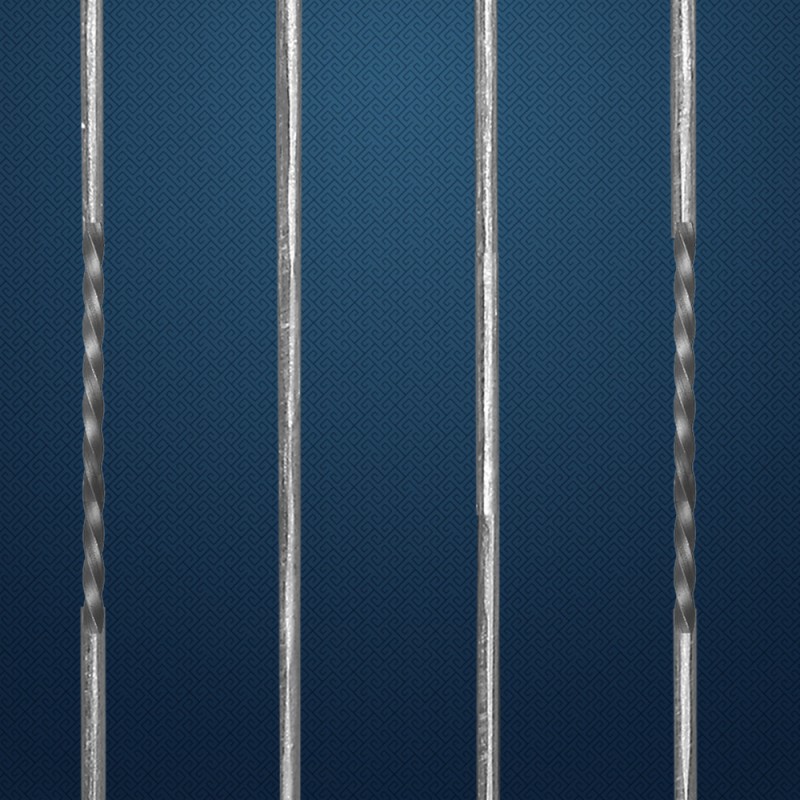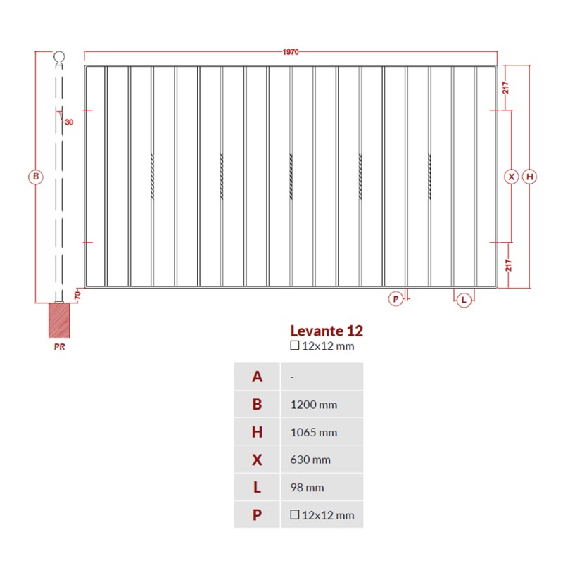 Grille de clôture en acier. Élément de 1970x1065mm composé de 17 balustres espacés de 98mm en carré de 12x12mm, avec une torsade centrale pour 1 balustre sur 3.