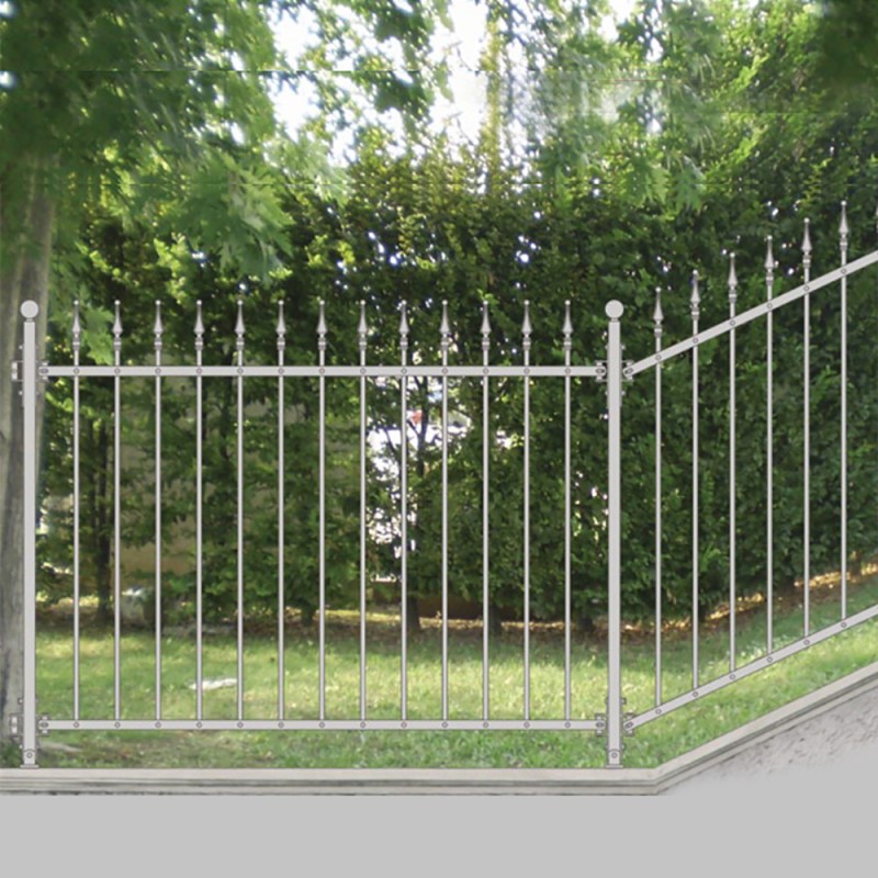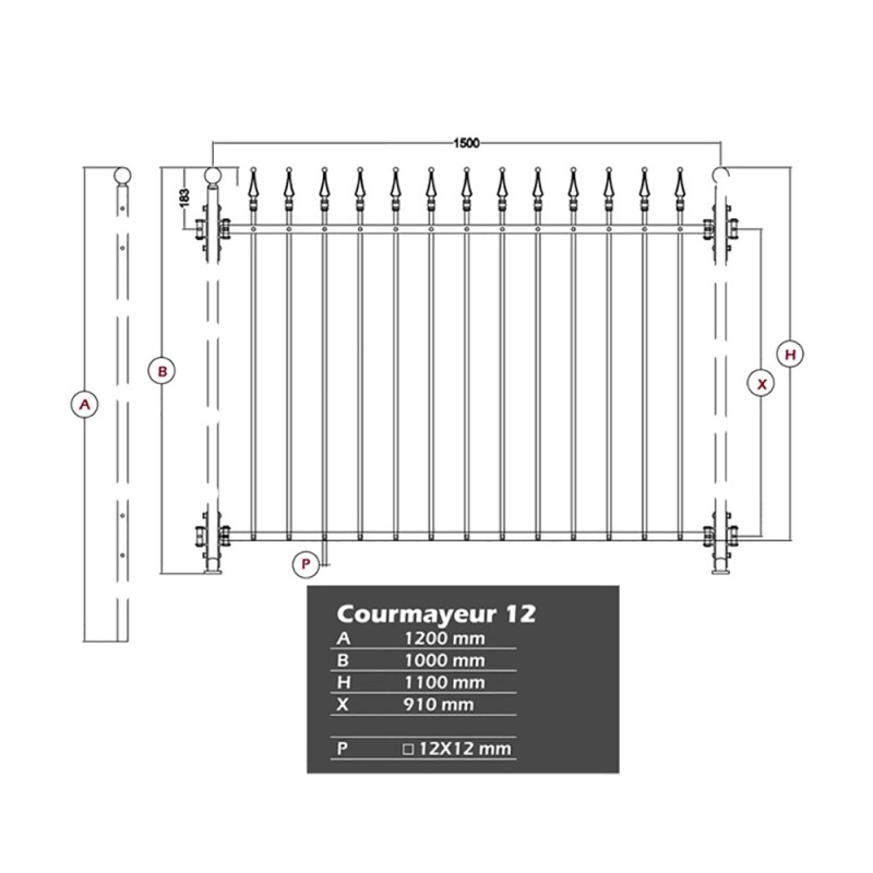 Les balustres sont en carré plein de 12 x 12mm. A leur extrémité supérieure est soudée une magnifique pointe de lance en acier estampé avec une terminaison boule afin d'assurer une protection optimale.