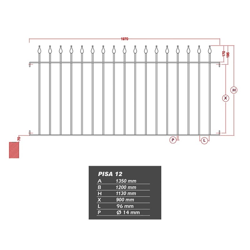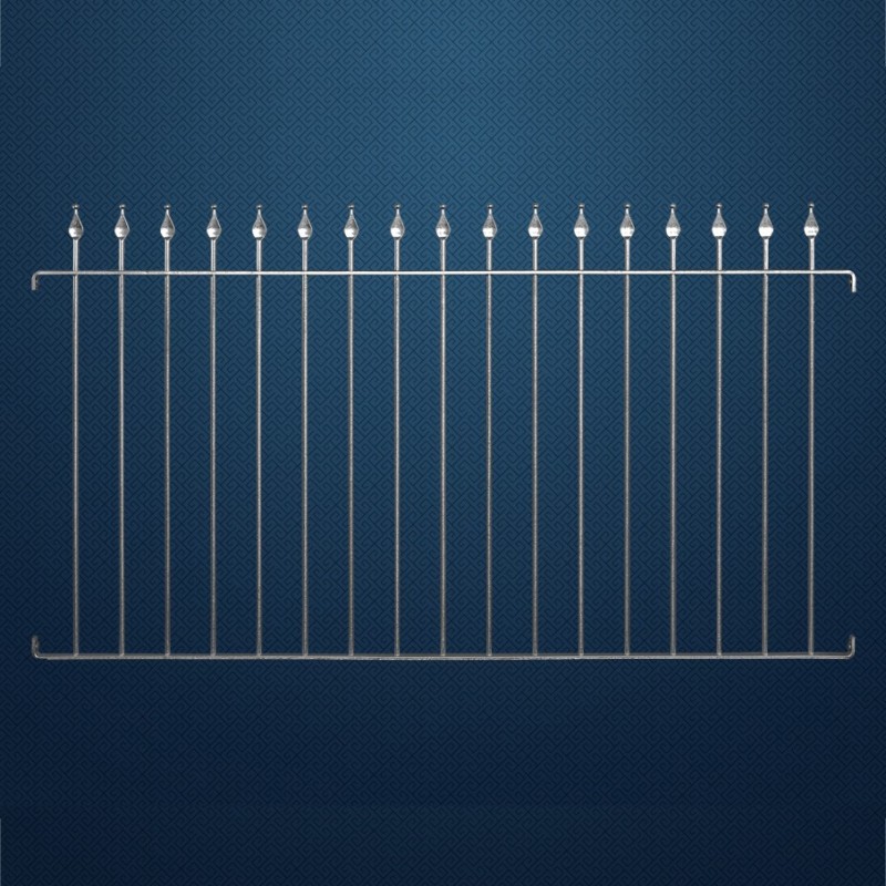 Grille de clôture en acier. Élément de 1970x1130mm composé de 17 balustres espacés de 98mm.