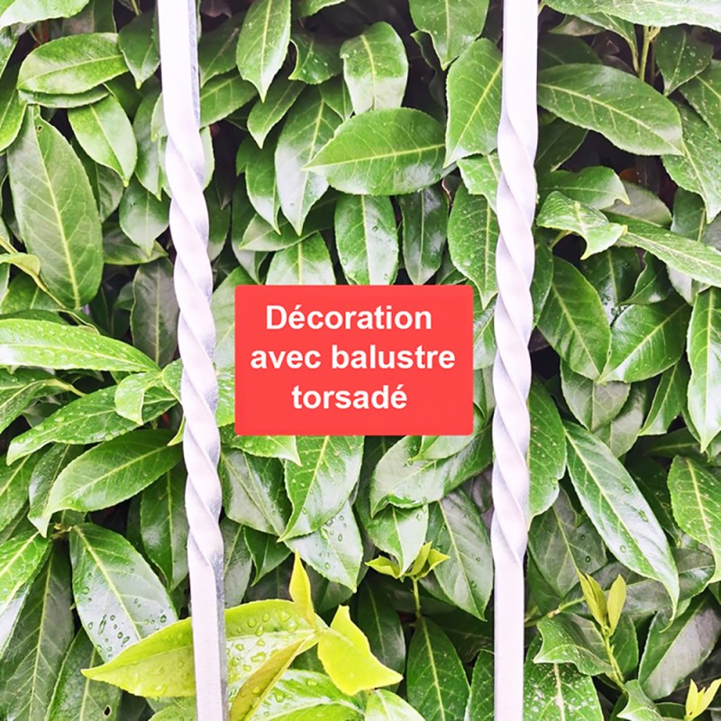 Les balustres sont en carré plein de 12x12mm torsadés. Leur extrémité supérieure est équipée d'une boule afin d'assurer une protection optimale.