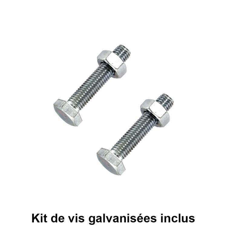 Le poteau est munie de deux tiges soudées, lesquels seront enfilés dans la clôture et bloquées au moyen de deux boulons (fournis) en acier galvanisé.