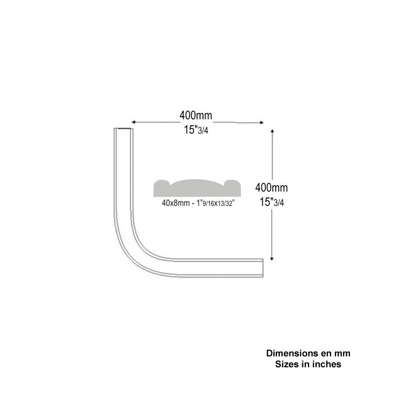 Cintrée à plat à partir d'une main courante profilée de 40x8mm. Cet article a la même section que les main courantes FK3002 (2m) et FK3003 (3m).