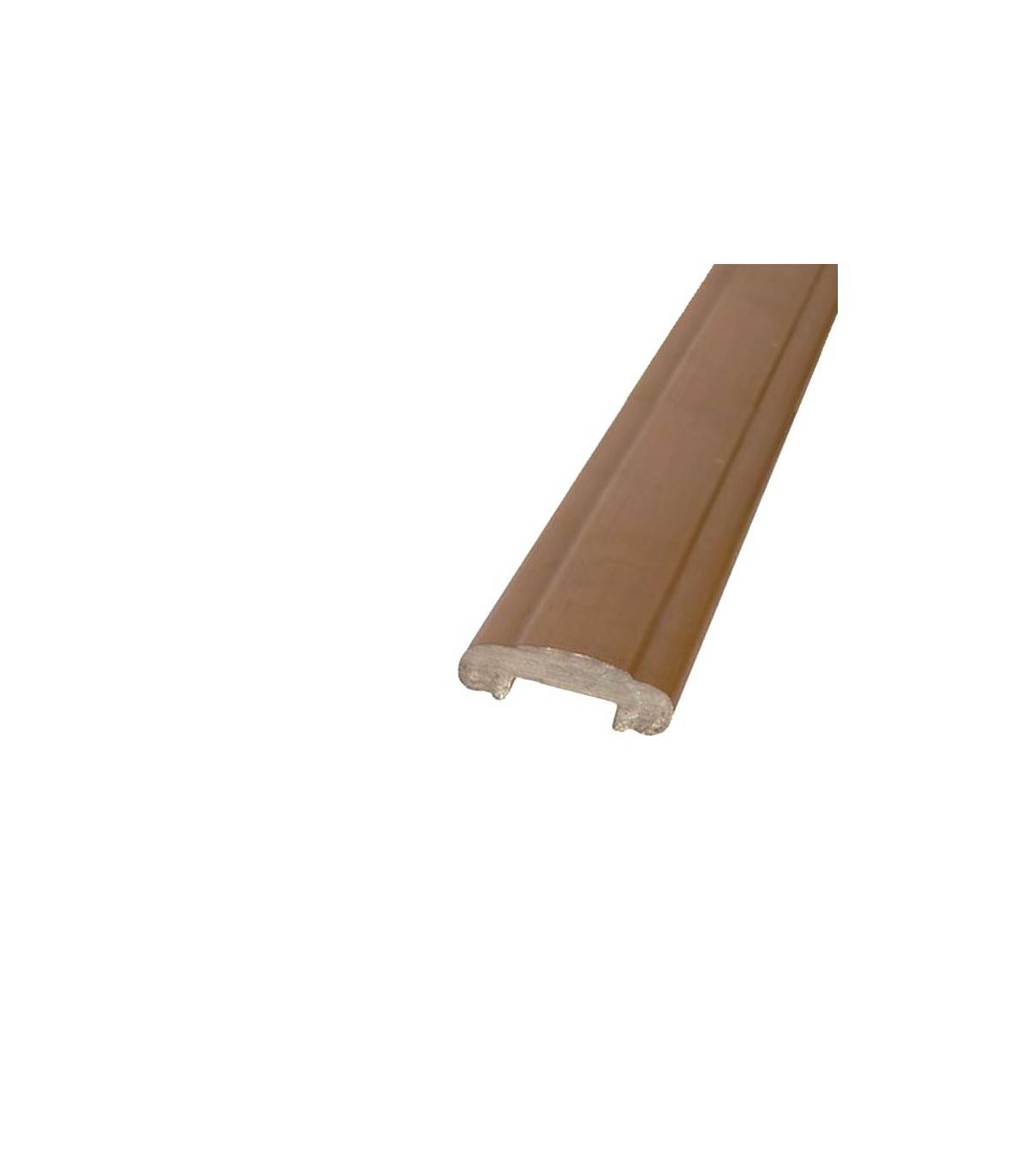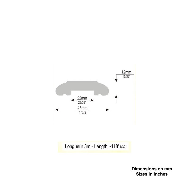 Main courante laiton moulurée de 45x12mm. Livrée brute non polie en longueurs de 2,00m. Elle a un creux sur le dessous de largeur 22mm pour recevoir un plat métallique de 20x10mm servant de sous lisse.
