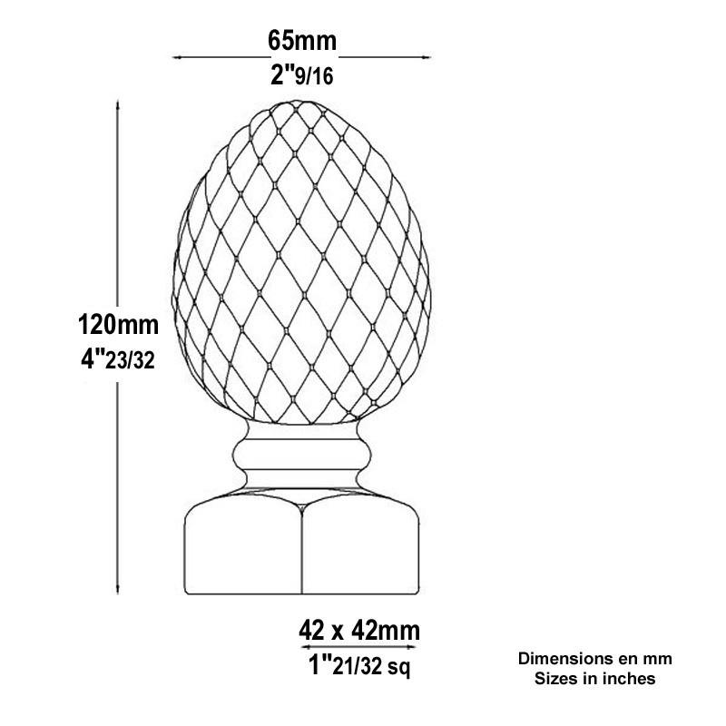 Ce pommeau est en fonte et peut coiffer des poteaux d'escaliers ou des poteaux de clôtures