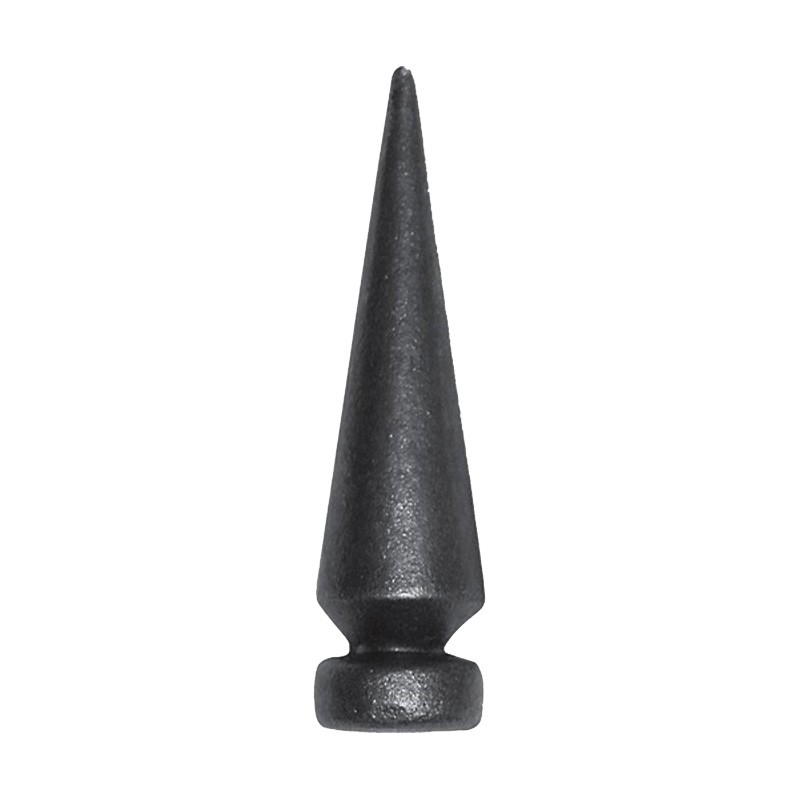 Effilée, simple et sans artifice, cette pointe de lance en fer forgé est pleine et à souder en bout. Elle convient bien en finition de balustres carrés de 18x18, 20x20 et même 25x25mm. Elle est fabriquée et livrée sans orifice.