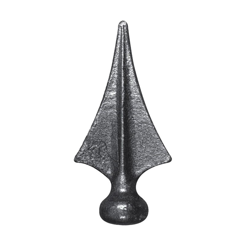 Sa ligne rappelle les pointes de flèches. Cette pointe de lance en fer forgé est pleine et à souder en bout. . Elle convient à des balustres de taille modeste, 14 ou 16mm. Elle est fabriquée et livrée sans orifice. Caractéristiques: