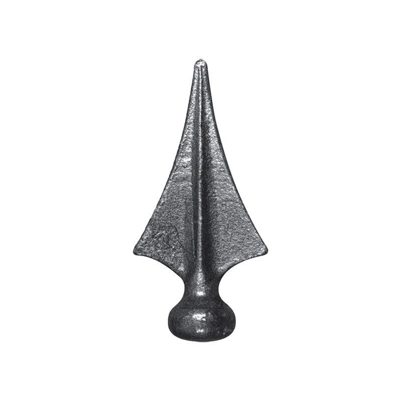 Sa ligne rappelle les pointes de flèches. Cette pointe de lance en fer forgé est pleine et à souder en bout. Elle convient à des balustres de taille modeste, 14 ou 16mm. Elle est fabriquée et livrée sans orifice.