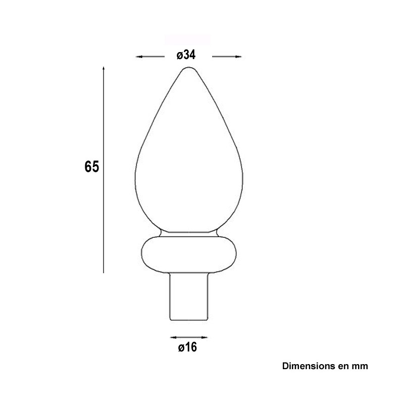 Sobre, cette pointe de lance en acier appointée est pleine et à coller en bout ou dans un tube de diamètre 16mm minimum. Elle est fabriquée et livrée sans orifice.