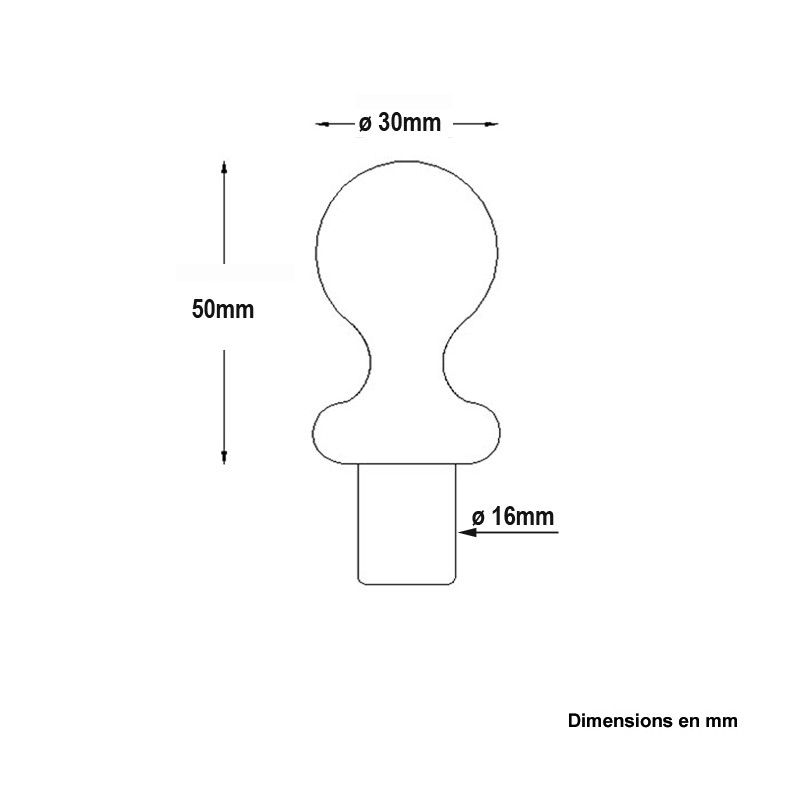 Pour fermer un tube de façon élégante, cette pointe de lance en forme de boule est en acier et sans aucun orifice.