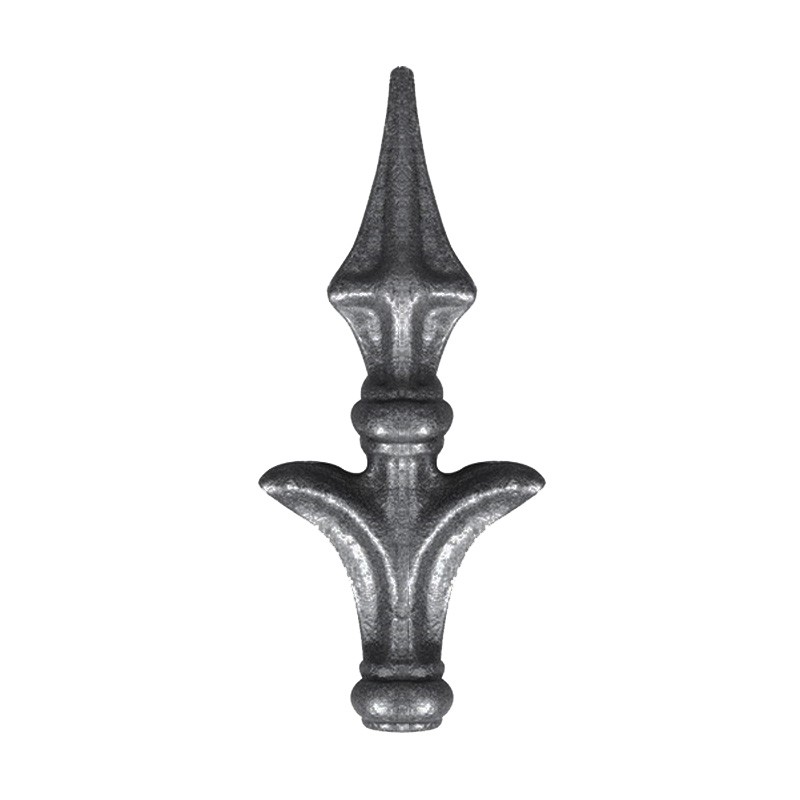 Sa forme cruciforme rappelle la fleur de lys. Cette pointe de lance en fer forgé est pleine et à souder en bout. Elle convient bien à des balustres de 14 ou 16mm. Elle est fabriquée et livrée sans orifice.