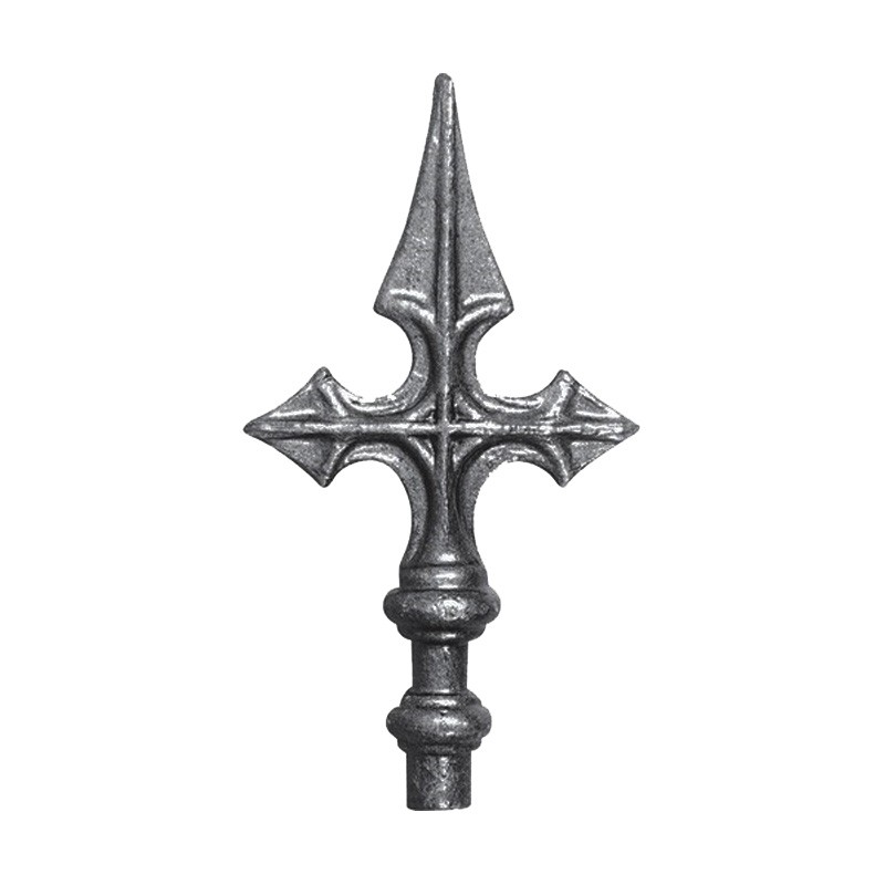 Sa forme cruciforme rappelle la croix de Saint Jacques. Cette pointe de lance en fer forgé est pleine et à souder en bout. Elle convient bien à des balustres de 14 ou 16mm. Elle est fabriquée et livrée sans orifice.