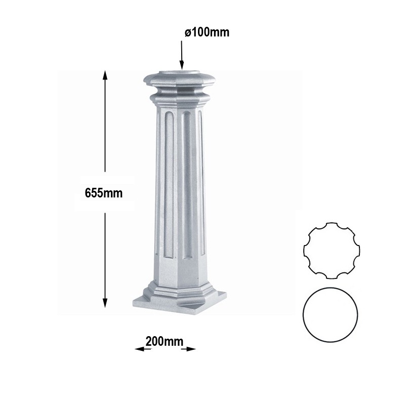 Chapiteau hauteur 97mm pour tube ø80mm cannelé...
