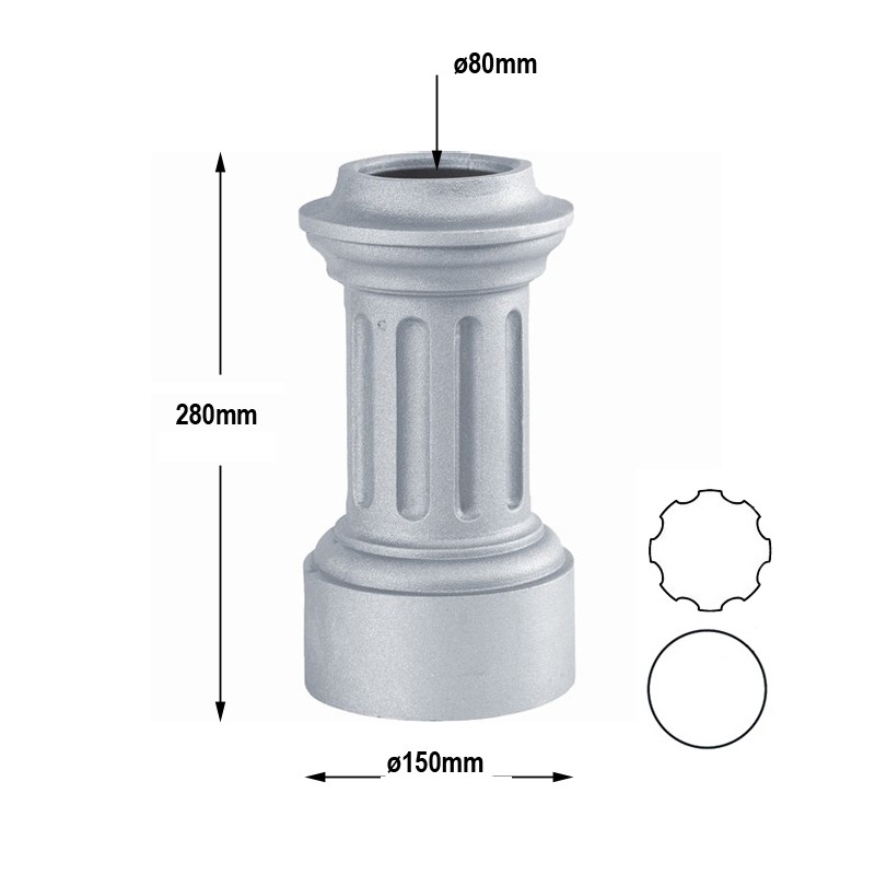 Chapiteau hauteur 97mm pour tube ø80mm cannelé...