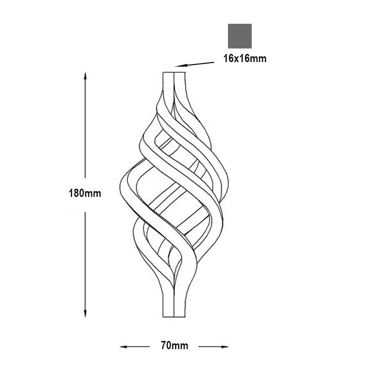 Pigne de 180x70mm réalisée avec 4 fils de 8x8mm. Pour soudure sur balustre de 16x16mm.